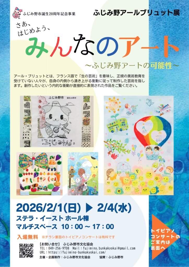 ~ふじみ野市でオープンしたばかりの新ホールにて、アールブリュット作品の展示とトイピアノコンサートの企画で「アートの可能性」を探ります~